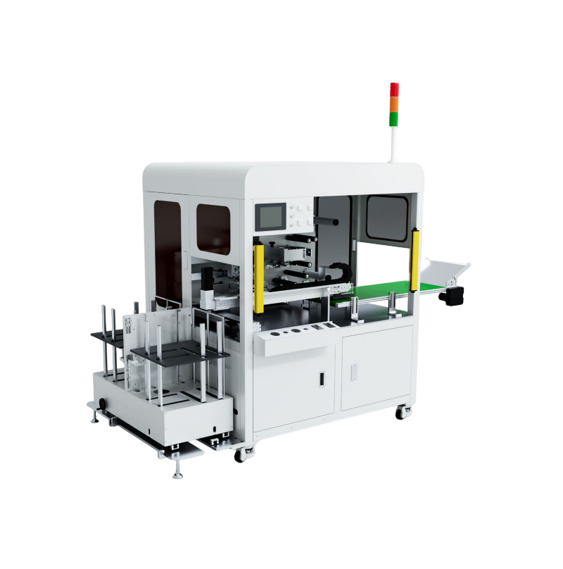 全自动贴胶机是一种将成型好的双面胶,定位贴合在冲切成型好的气凝胶隔热片上按客户需求所定制的一款全自动化贴胶设备。针对时下新能源行业动力电池里所需的气凝胶隔热片所设计的一款设备。
